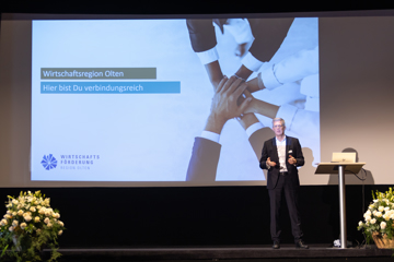 Nach der Begrüssung durch Rolf Schmid, Geschäftsführer der Wirtschaftsförderung Region Olten, folgte ein Referat von Prof. Dr. Lino Guzzella. Als ehemaliger Rektor und Präsident der ETH Zürich unterstrich er die Bedeutung einer exzellenten Bildungslandschaft und kontinuierlicher Innovation für die Wettbewerbsfähigkeit des Werkplatzes Schweiz.
